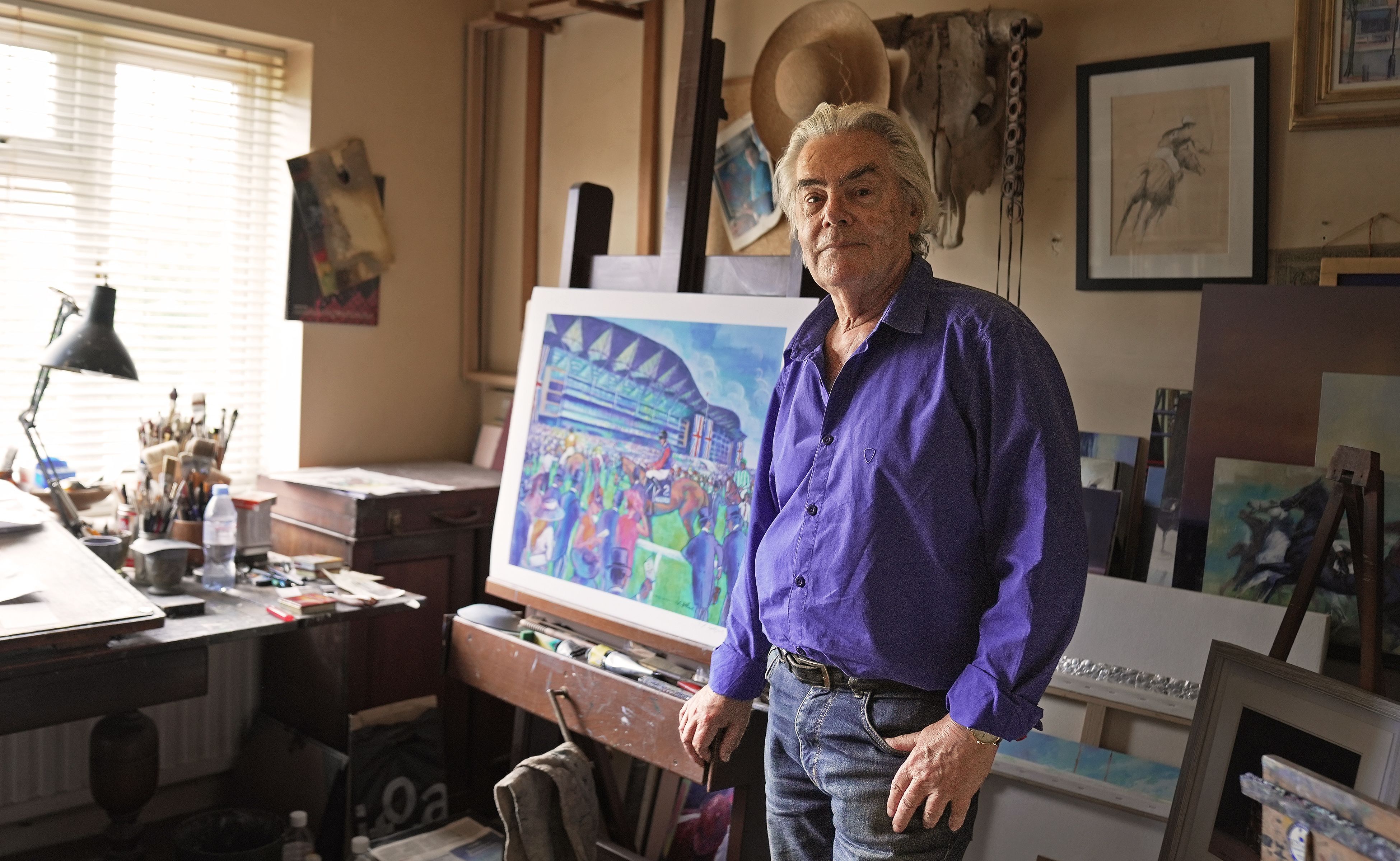 “With a knife I can scrape in because it’s hard, then add colour, but on canvas you can’t, as it gives too much. I’ve got more impressionistic with some of my work in recent years and the colours are very high key. My latest is of the paddock at Ascot, which is proving a very popular print.”